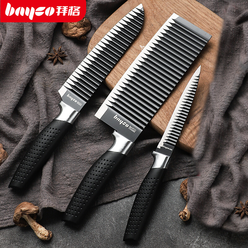 拜格刀具厨房套装宝宝辅食德国工艺不锈钢切菜刀菜板套装家用三件套组合 黑骑士防粘波浪三件套…