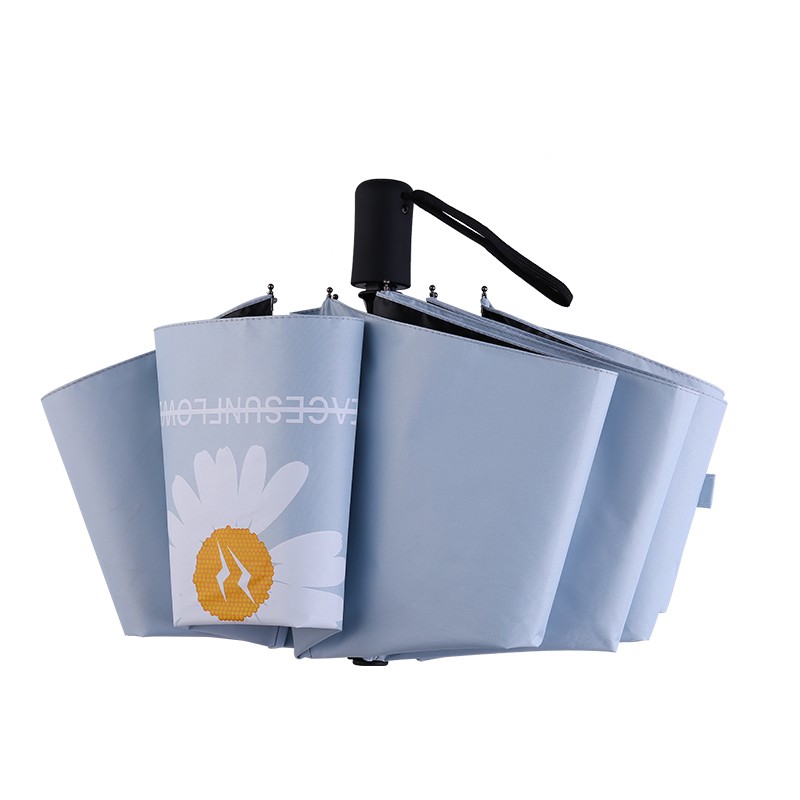 鄂尔沙龙 小雏菊黑胶全自动雨伞三折遮阳防晒防紫外线学生男女晴雨两用伞 小雏菊全自动黑胶天蓝色…