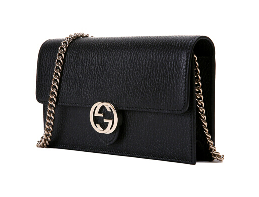 GUCCI 古驰 女士黑色荔枝纹双G扣风琴链条单肩斜挎包 510314 CAO0G 1000